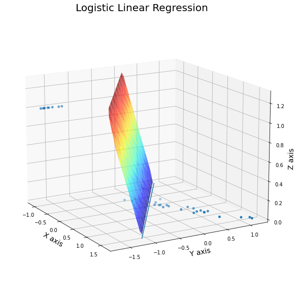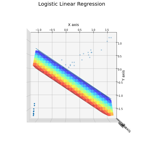 ② 시각화 그림에서 평면(선형방정식) z는 (-∞, ∞)에서 값을 가지는 선형방정식으로서 logit(p)와 대응된다.