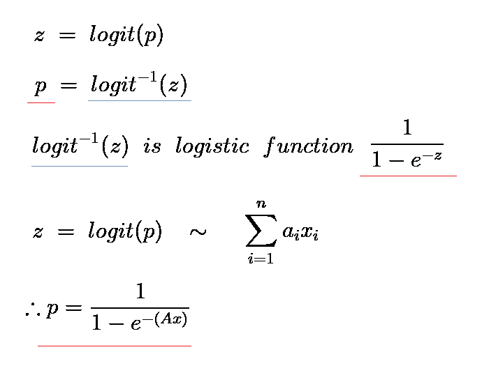 (+ logit(p)와 선형방정식은 선형적으로 관련된다)