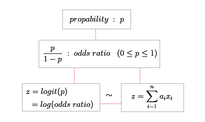 z = log(odds ratio) = logit(p) ~ 선형방정식