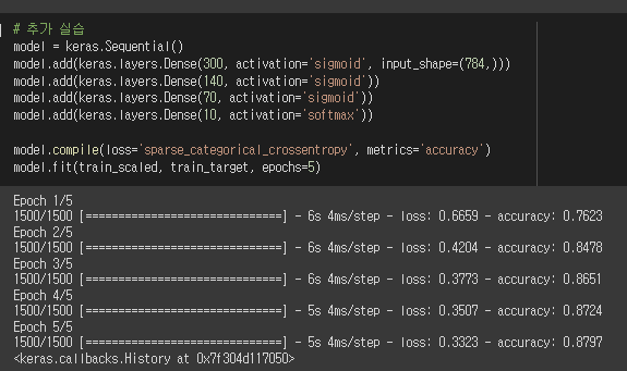 실습해보니 훈련세트의 점수는 relu를 사용한 쪽이 높긴 하지만,