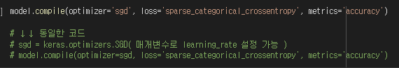 케라스 모델에서는 경사하강법을 선택할 수 있다.