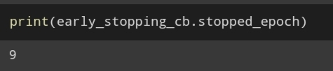 9 epoch => 즉 10번째 epoch에서 조기종료되었다.