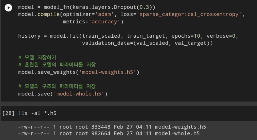 저장한 파라미터, 모델구조는 나중에 다시 불러들여 쓸 수 있다.