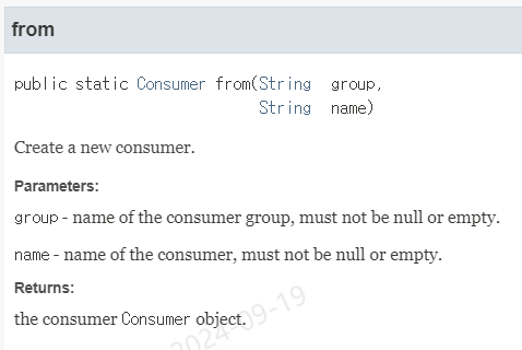 Consumer consumer = Consumer.from(groupKey, consumerKey);